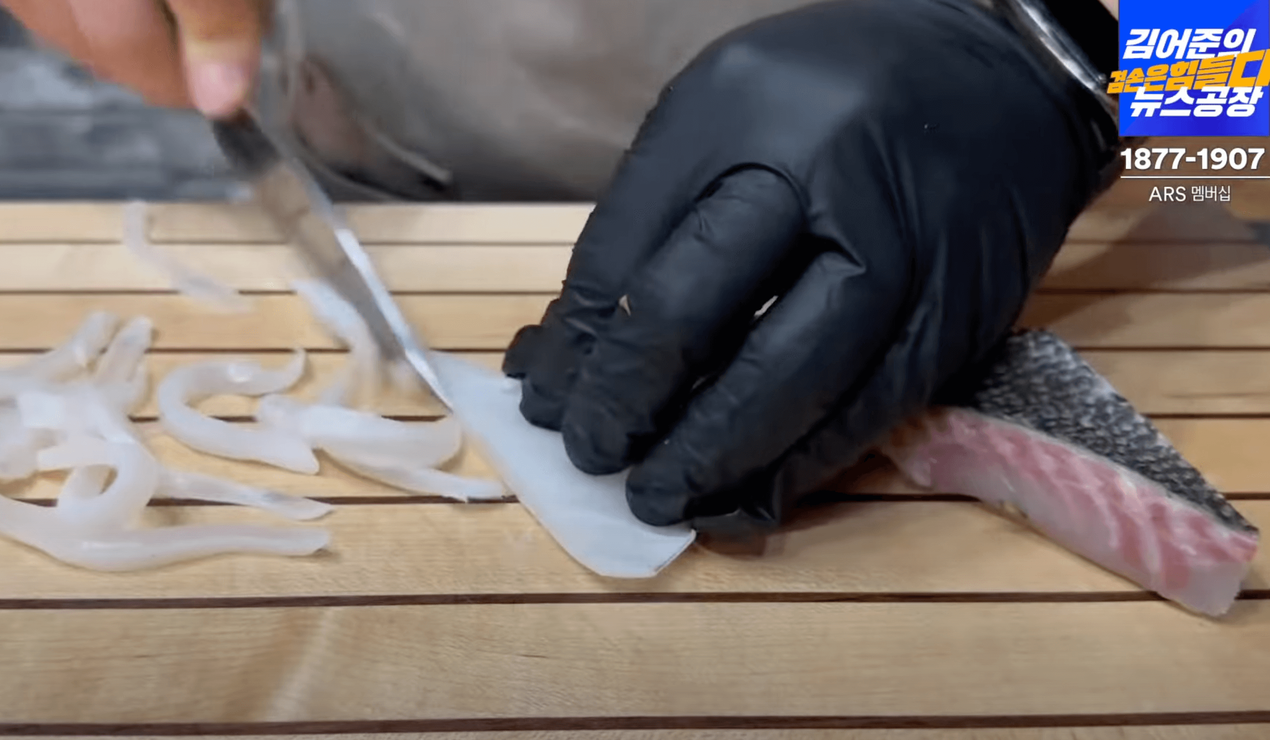 (참고로 벤자리돔은 뜨거운물에 데치거 하는 장면이 안나온걸 보니 손질만 잘하여 썰어 준것 같습니다. )