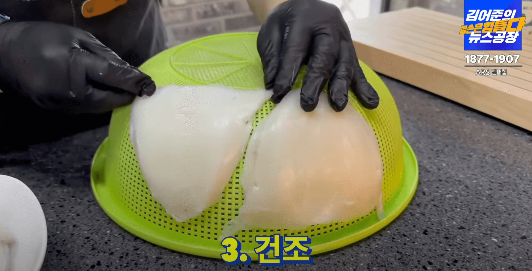 김어준의 겸손은 힘들다 금요미식회 홈메이드 반건조 갑오징어 영상은 1:31:00부터 보시면 됩니다.