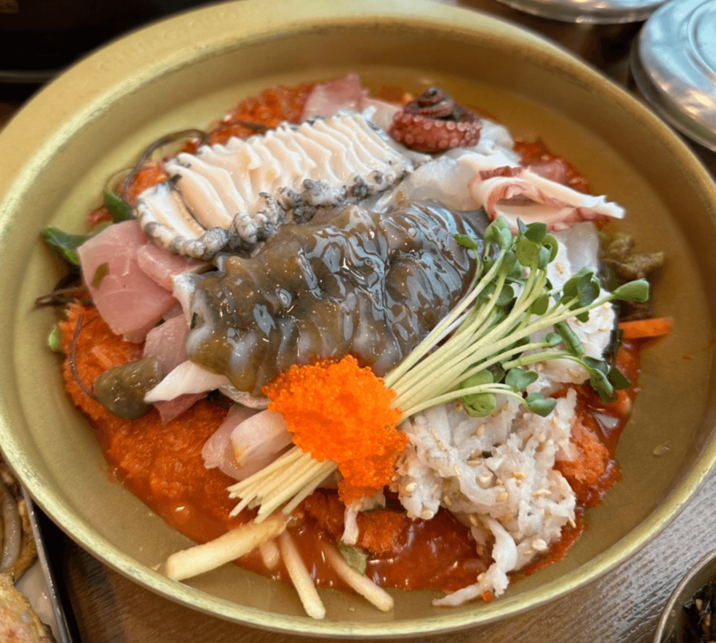 추가로 식감이 일품인 해삼과 전복 그날그날 아침에 잡혀온 제철 생선을 푸짐하게 썰어 넣어 보양식을 먹는 듯한 느낌까지 든다고 합니다.