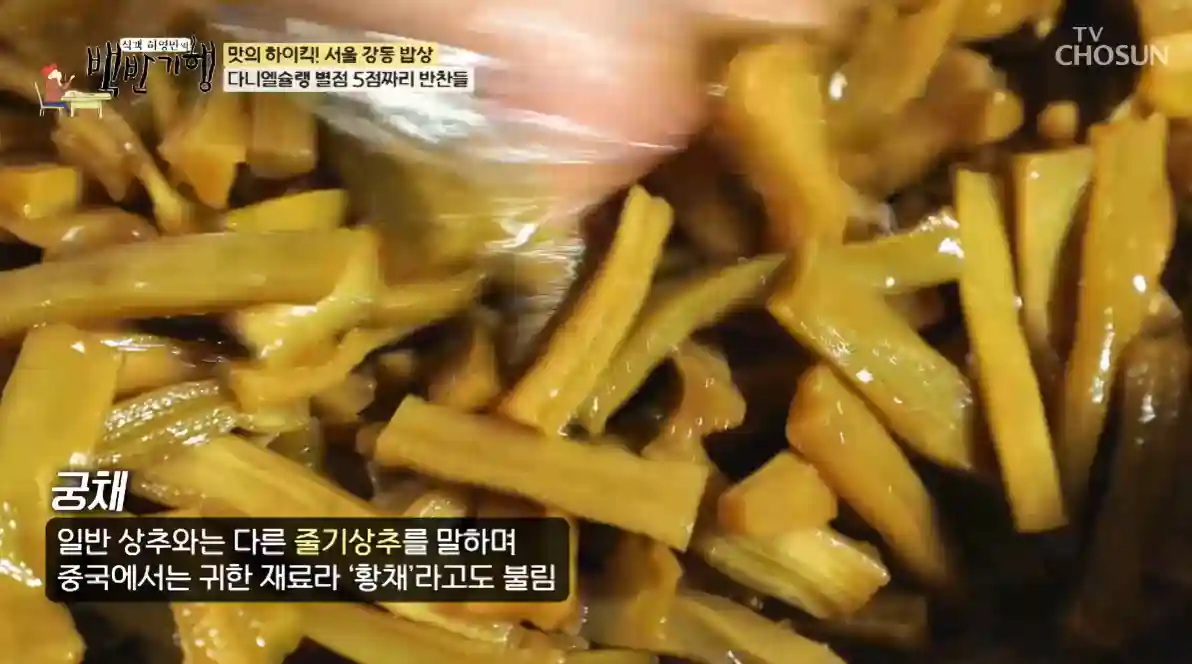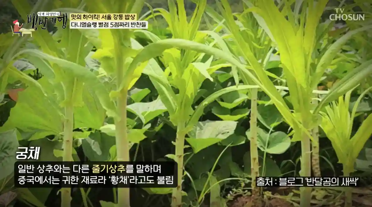 궁채는 일반 상추와는 다른 줄기상추를 말하는데요. 중국에서 궁채가 귀하여 황채라고 불리기도 합니다.