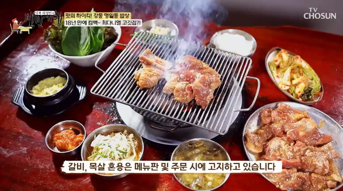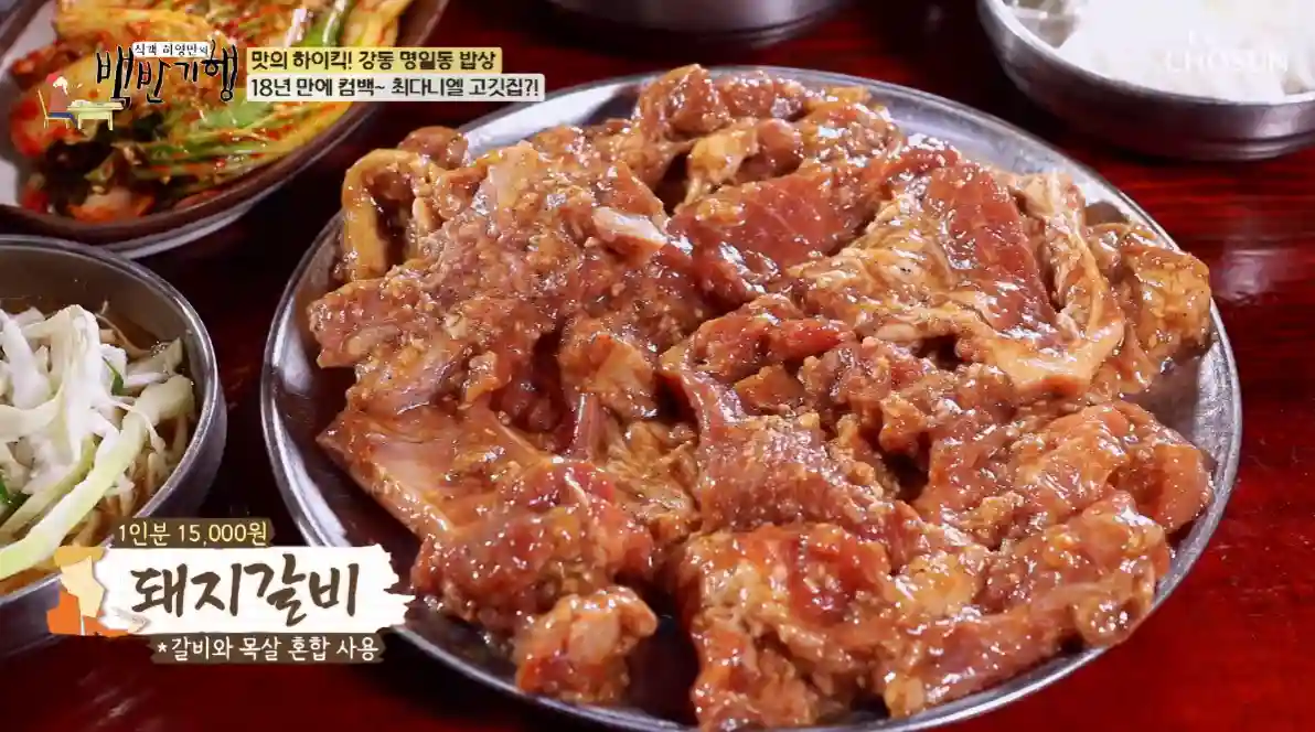 백반기행 서울 강동구 돼지갈비 맛집 사장님은 36년간 재료를 쉽게 바꾸지 않으며, 고기를 700번가량 주무르는 일을 한 번도 쉬지 않고 운영해 왔다고 합니다.